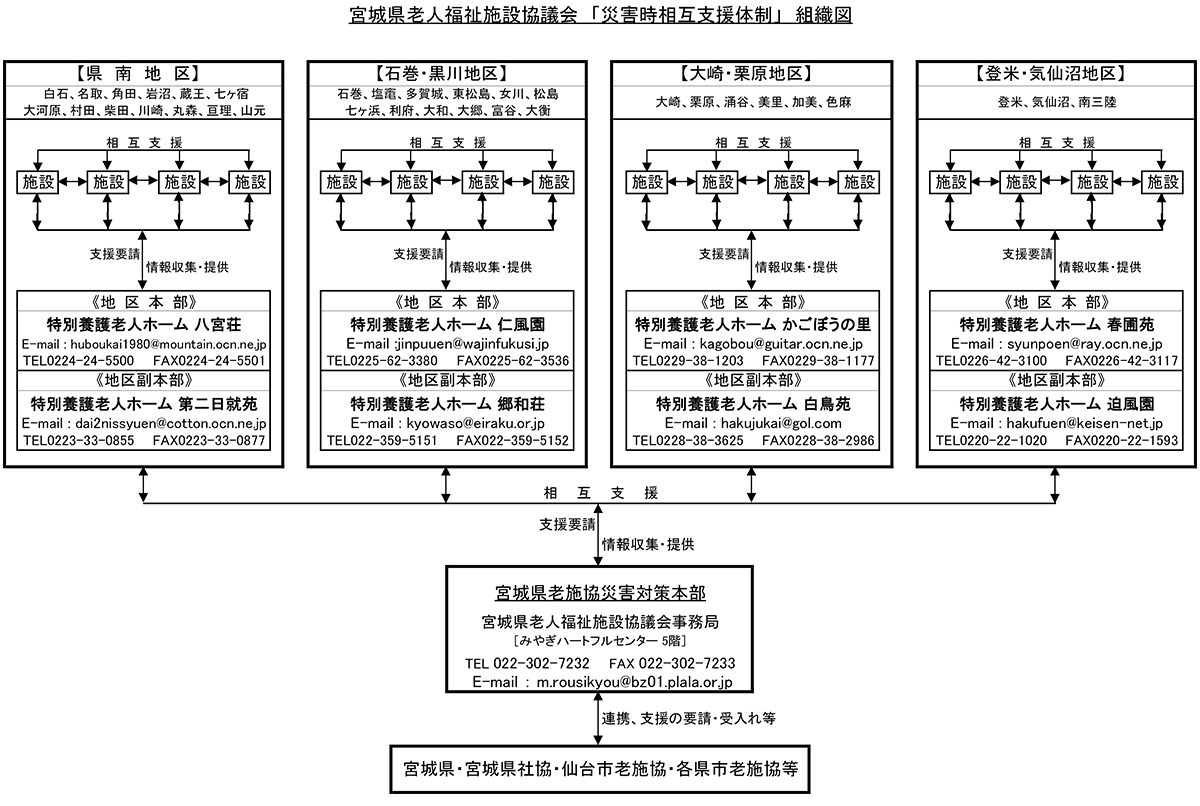 宮城県老人福祉施設協議会 「災害時相互支援体制」 組織図